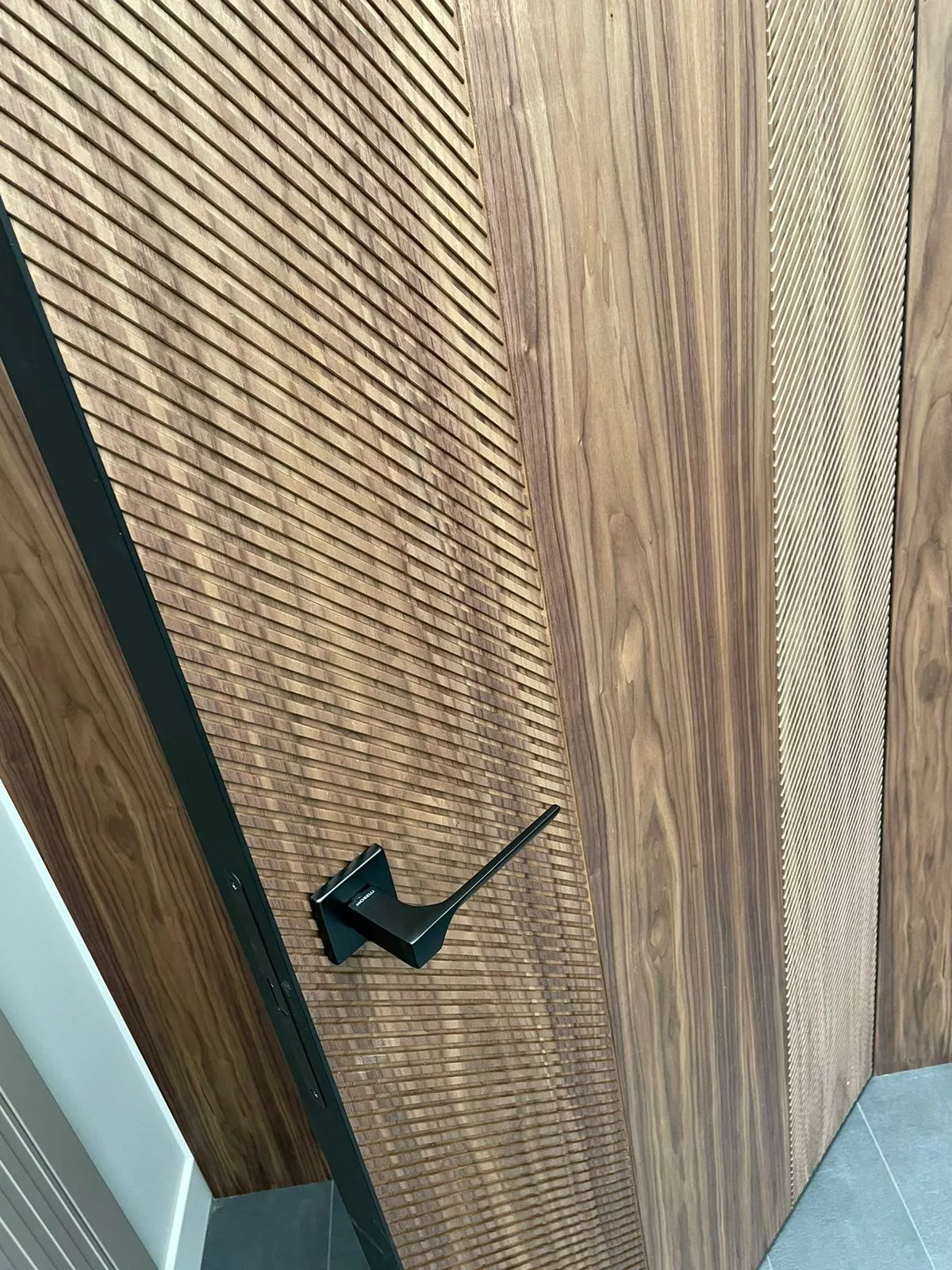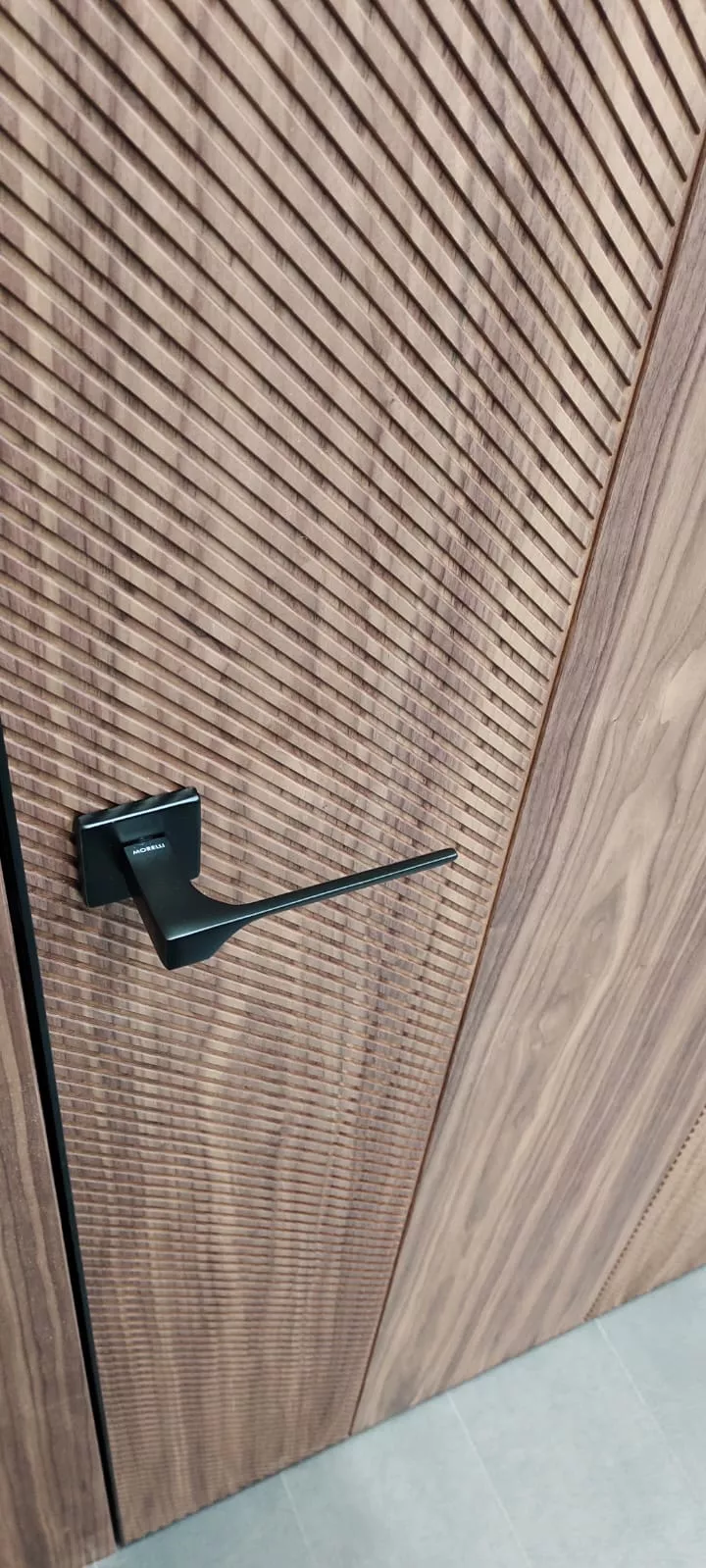 Коллекция COMBO в современном стиле выделяется частой глубокой фрезеровкой на полотнах. Двери коллекции могут быть изготовлены как в отделке из ламельного шпона американского ореха или натурального дуба, так и окрашены многослойной матовой эмалью.