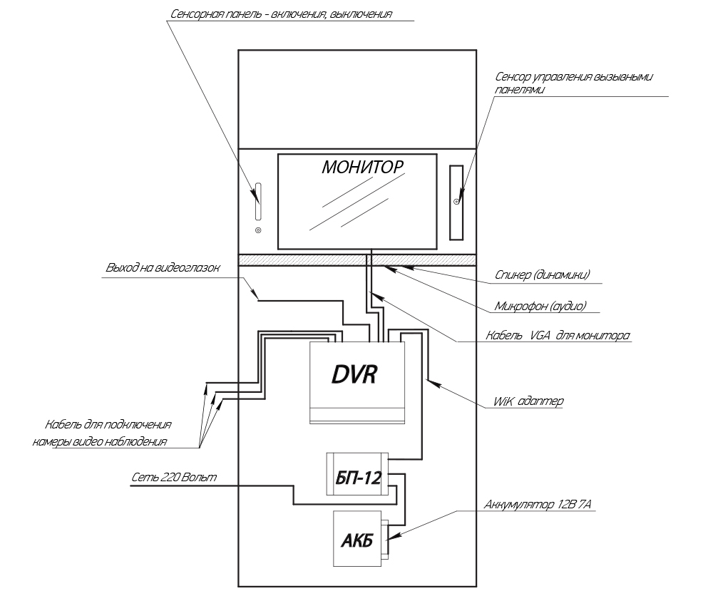 - Коммуникации для подключения от 1-й до 4-х видеокамер.